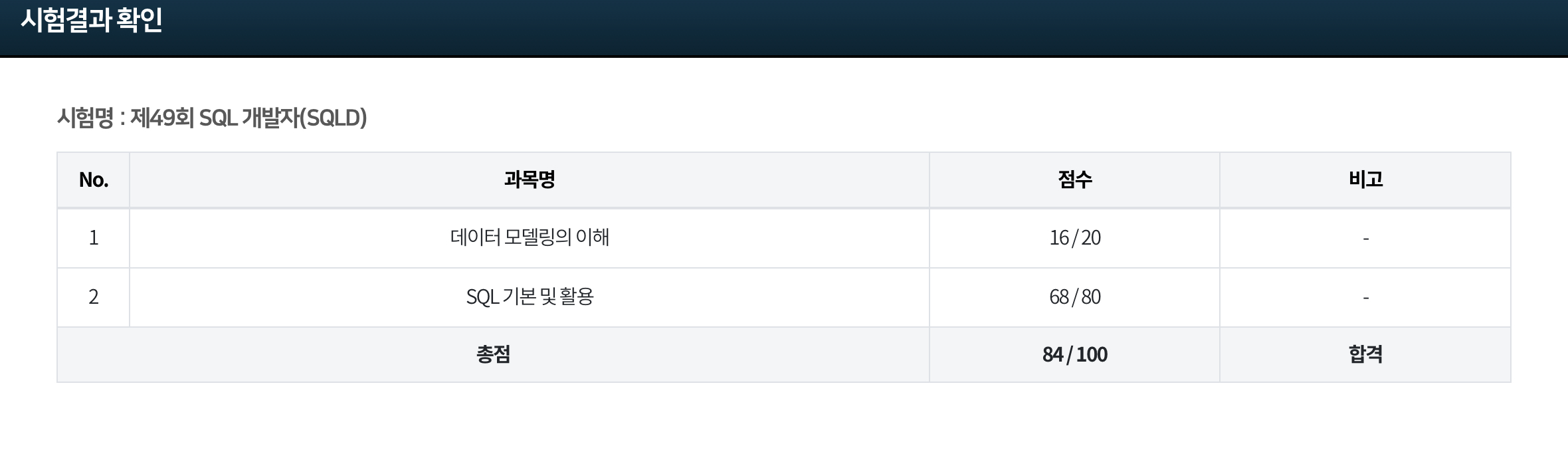 결과는 무려..84점!! 시험기간이 짧아서 많이 걱정했는데 안정적으로 합격해서 기분이 좋았다. ㅎㅎ