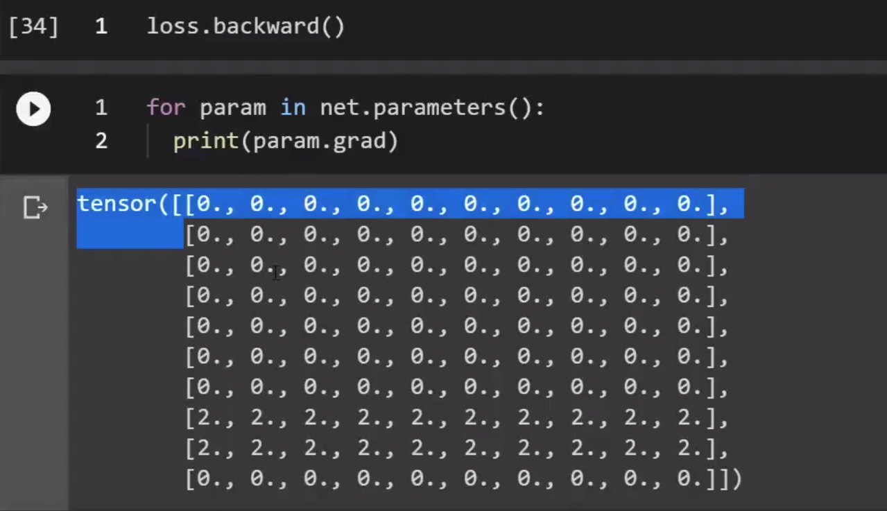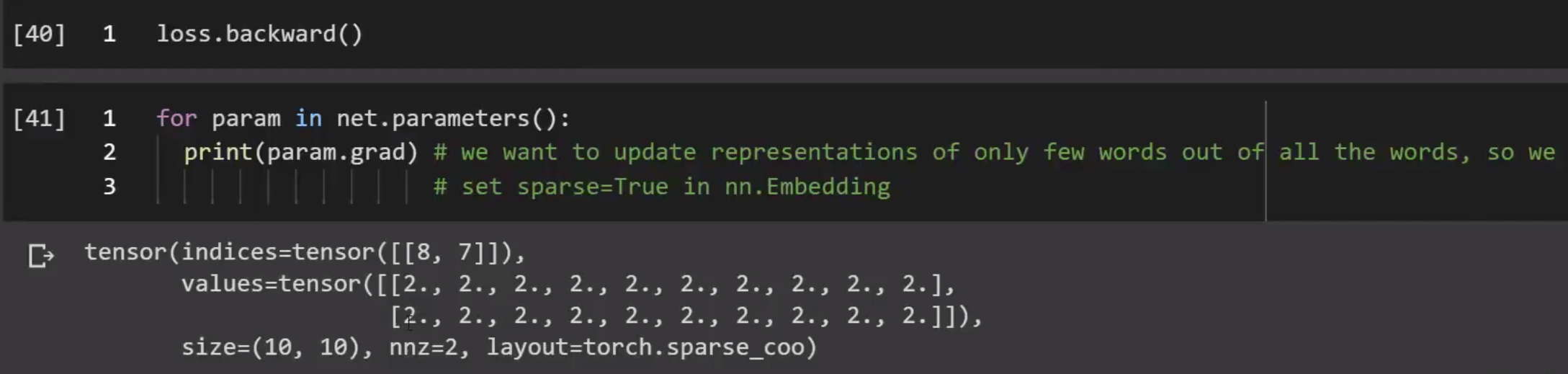 처음에 10 x 10으로 초기화했던 embedding의 매개변수들의 변화도(gradient)값입니다.