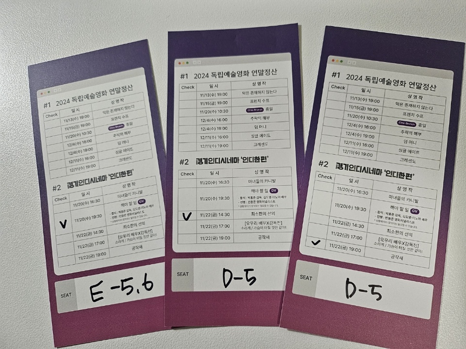 세 영화를 보기 위해 각각 신도림 아르떼 시네마와 아트나인 시네마, 광화문 씨네큐브를 찾았다.