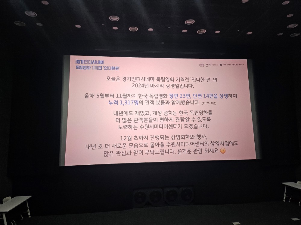 11~12월 수원시미디어센터에서는 한해를 마무리하며 ’2024 독립예술영화 연말정산‘ 과 경기인디시네마 기...