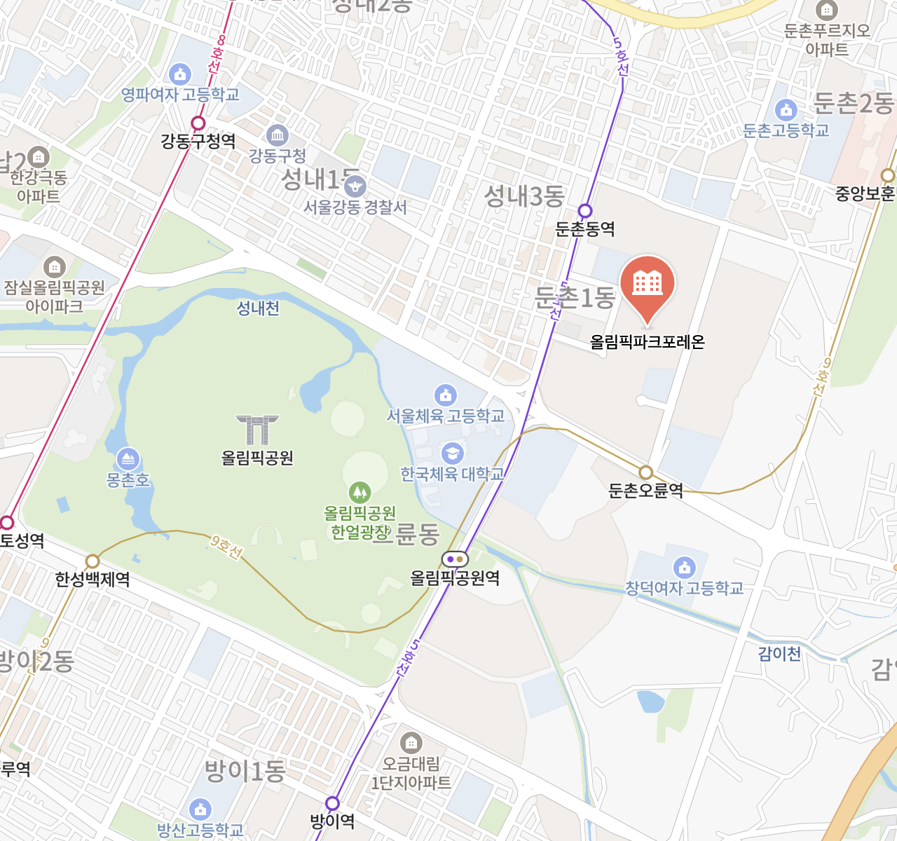 - 역: 둔촌동역(5호선), 둔촌오륜역(9호선)